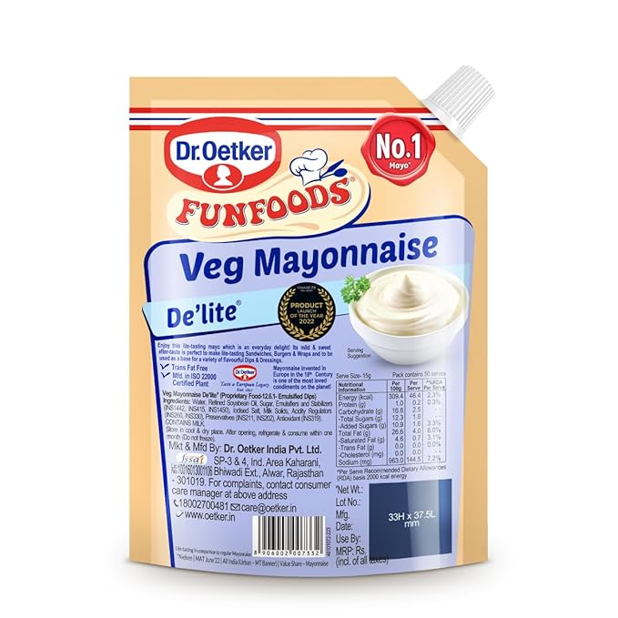 Dr. Oetker FunFoods De’lite Veg Mayonnaise, 750grams,