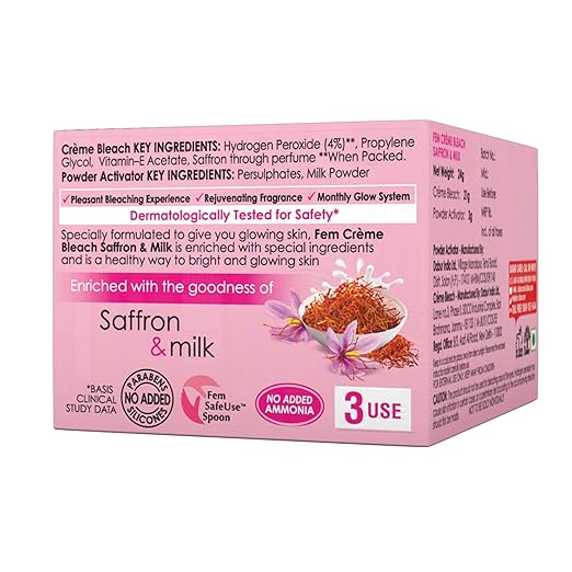 - EVEN SKIN TONE: Achieve a more uniform skin tone by reducing the appearance of dark spots, blemishes, and discoloration with the Fem Fairness Saffron & Milk Creme Bleach.