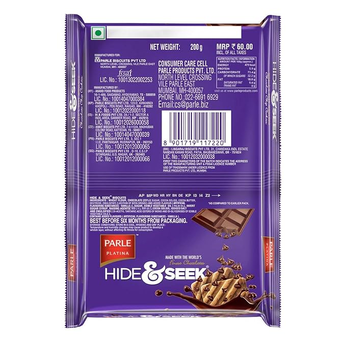 Parle Hide and Seek Chocolate Chip Cookies, 400g quantity